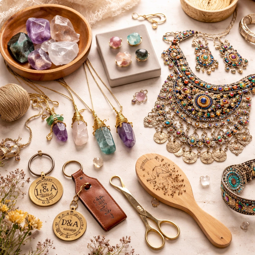 At Folkmarket, we create made-to-order vintage and crystal jewelry crafted around your vision. From raw and polished crystal pendants to vintage-inspired rings, bracelets, and necklaces, each piece is customized by hand using carefully selected natural stones, metals, and traditional techniques. Whether you’re looking for a one-of-a-kind crystal jewelry piece, a personalized gift, or a custom design for retail or wholesale, our artisans bring your ideas to life with attention to detail and authentic craftsmanship.