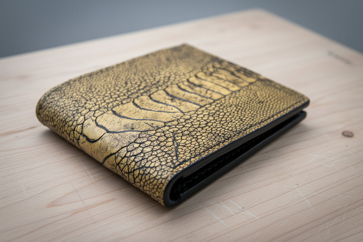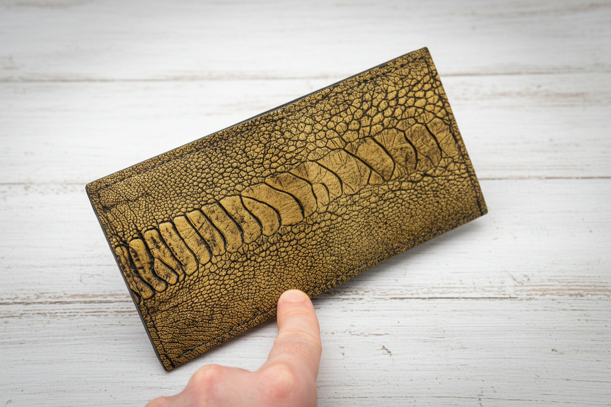 Yes — ostrich leather is prized for being both soft and exceptionally strong. Its natural oils make it more resistant to drying and cracking than most leathers, making it ideal for daily carry items like wallets.