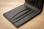 • Full Size: 4" H × 4½" W × ⅓" D — 8 card slots, 2 hidden slots, 1 bill pocket (optional ID window available on request)