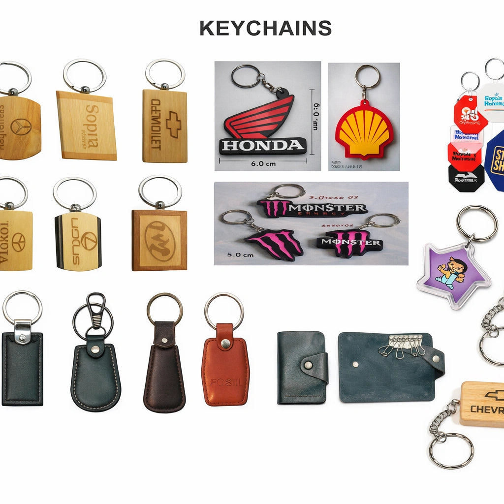 Our custom promotional keychains are designed to combine durability, branding impact, and everyday usability. Made from a variety of premium materials including wood, PU leather, acrylic, rubber, and metal, these keychains are ideal for corporate branding, giveaways, souvenirs, and wholesale distribution.