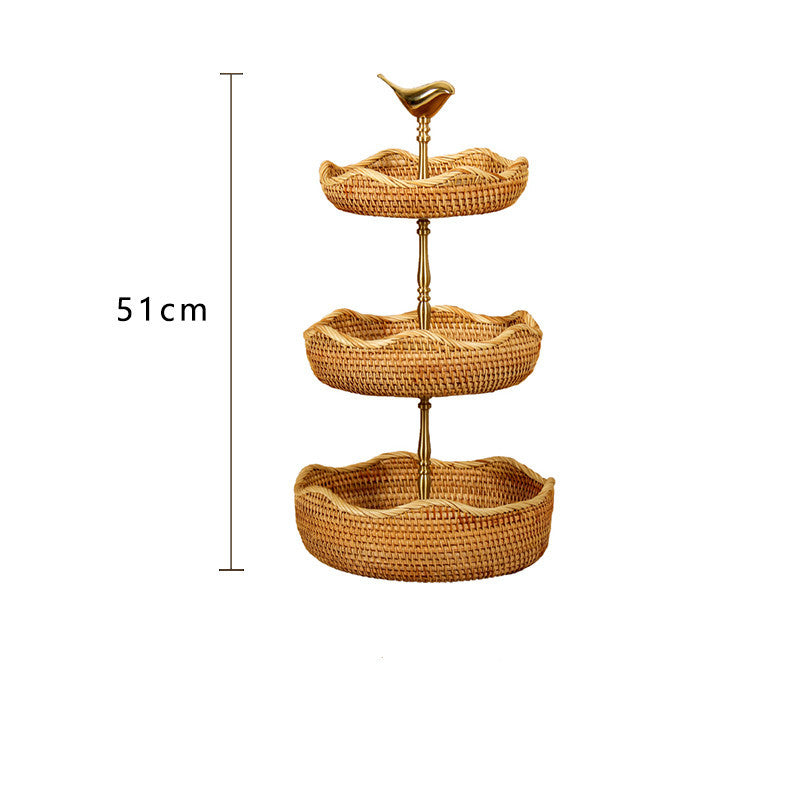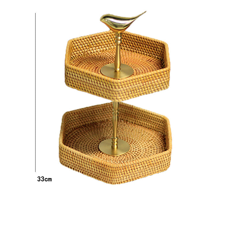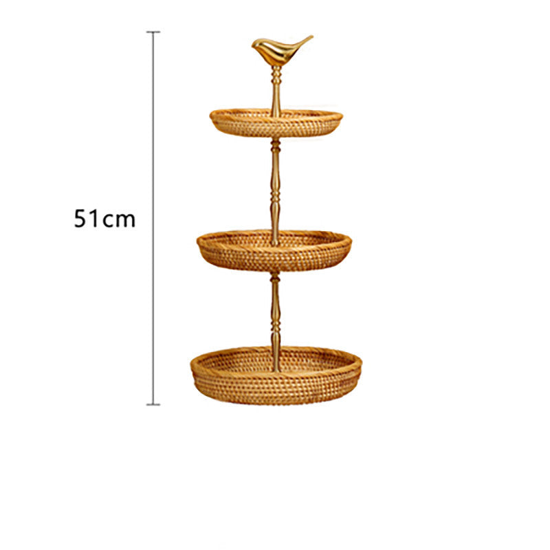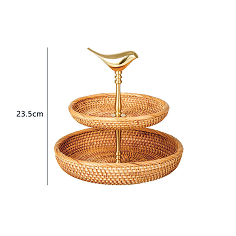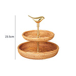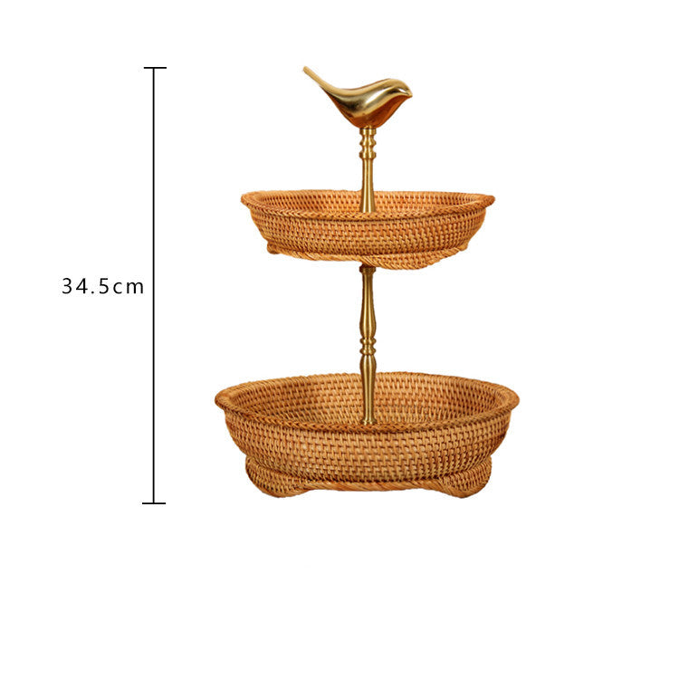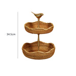 Retro Handmade Rattan Snack Double-layer Fruit Basket