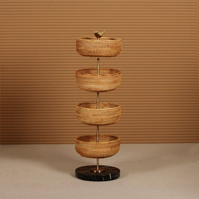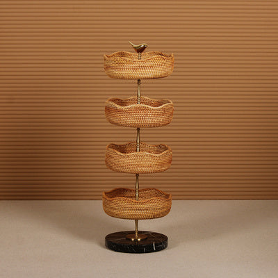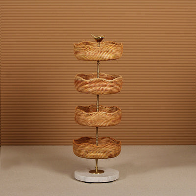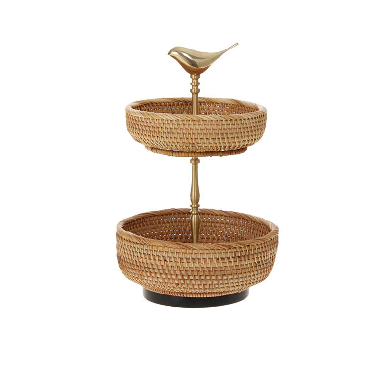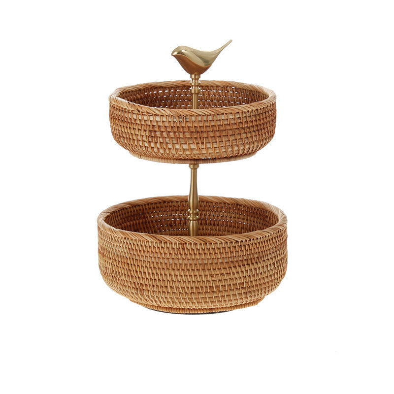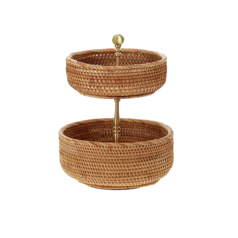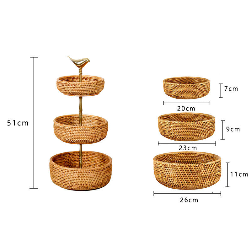 Retro Handmade Rattan Snack Double-layer Fruit Basket