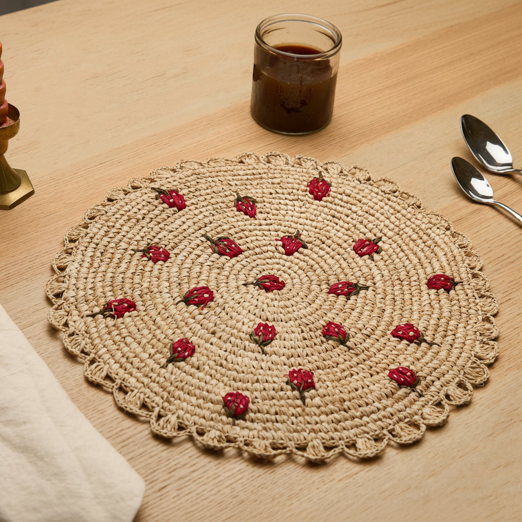 Strawberry Raffia Placemat – Hand-Crocheted Natural Table Mat