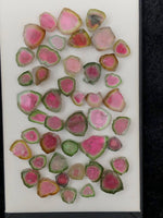 Grab the deals of tourmaline slices. They are 100% natural and sourced from Afghanistan ethically. They have very nice watermelon shapes and texture. Ideal for crafting any type of homemade jewelry.
